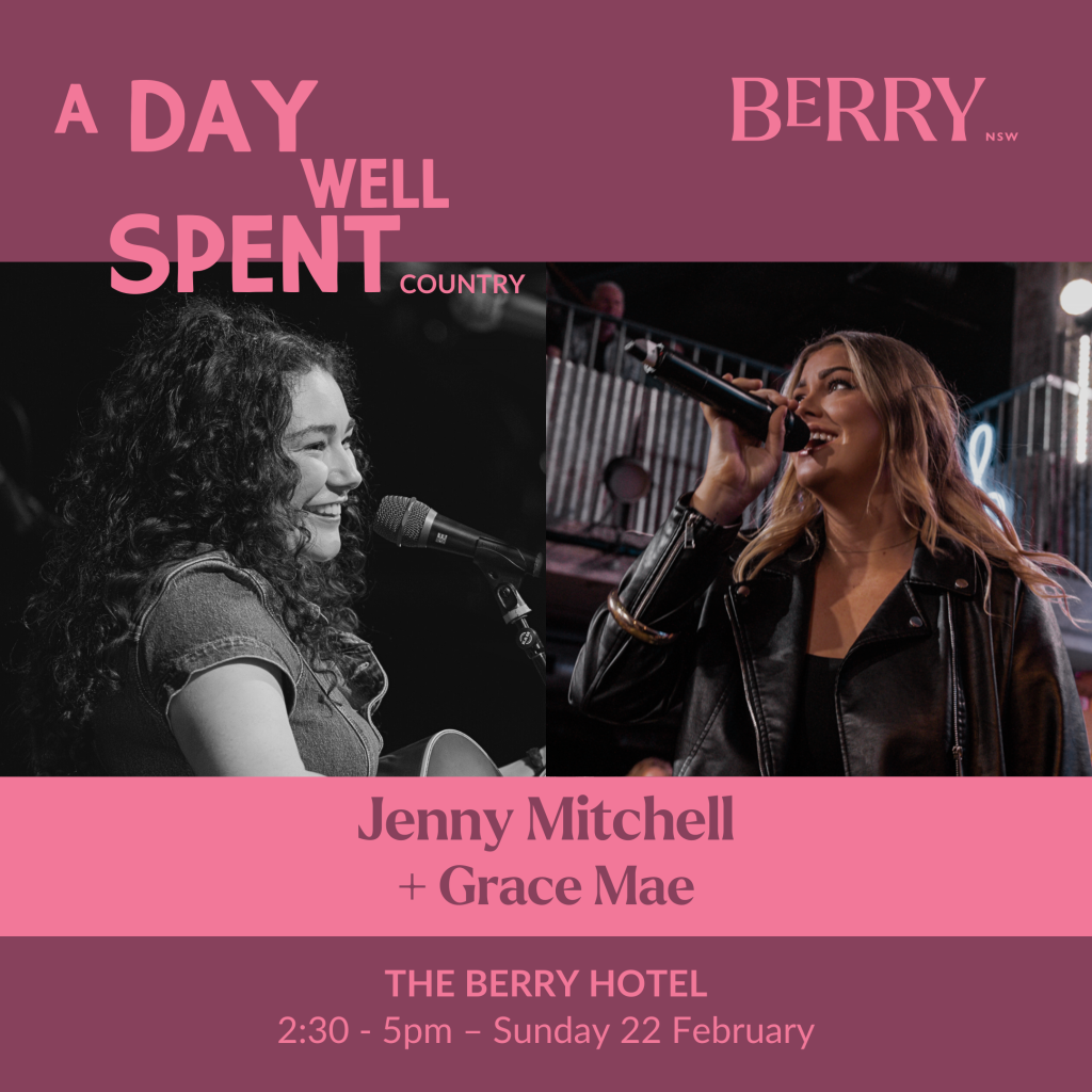Part of Berry’s A Day Well Spent series in the Extend the Weekend program, this session at the Berry Hotel brings premium, pub-hosted Country music to the heart of town — the perfect reason to stay an extra night and savour the local scene. The session features a set from Grace Mae (2:35pm) followed by Jenny Mitchell (4pm).